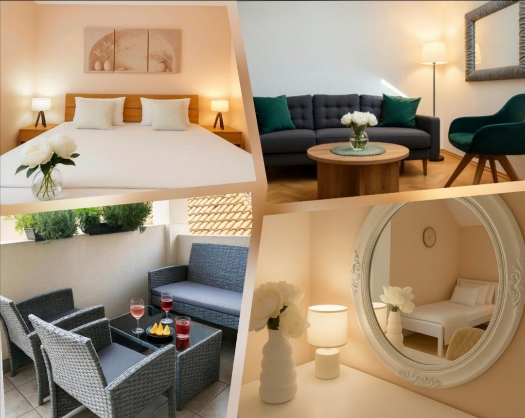 Enjoy a stylish experience at this centrally-located place in brand new building.The apartment consists of a bright bedroom with a comfy king-sized bed, dinning table for 4 persons and modern fully equipped kitchen. A sunlit living room with Smart TV. The pull-out corner in the living room can also serve as an additional bed for 2 more guests. The entire apartment was designed by architect (Adil Glavovic - axisarchiteture)