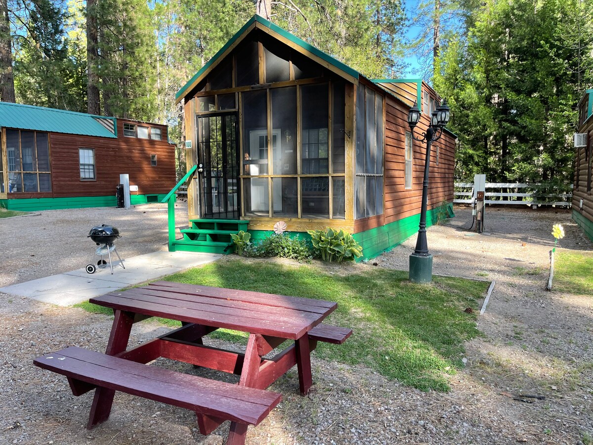 Es una hermosa cabaña escondida bajo los pinos. Cerca del monte Shasta y de las zonas de esquí, pesca y senderismo, así como de la histórica ciudad de Dunsmuir. Hay una cocina con heladera grande para que puedas quedarte en casa o disfrutar de una comida encantadora en la ciudad. El monte Shasta está a unos 10 minutos con tiendas y restaurantes maravillosos para explorar. La cabaña está ubicada en Cedar Pines RV Resort, por lo que hay un amplio estacionamiento para remolques. Hay cámaras de seguridad alrededor del parque, pero no en la cabaña.