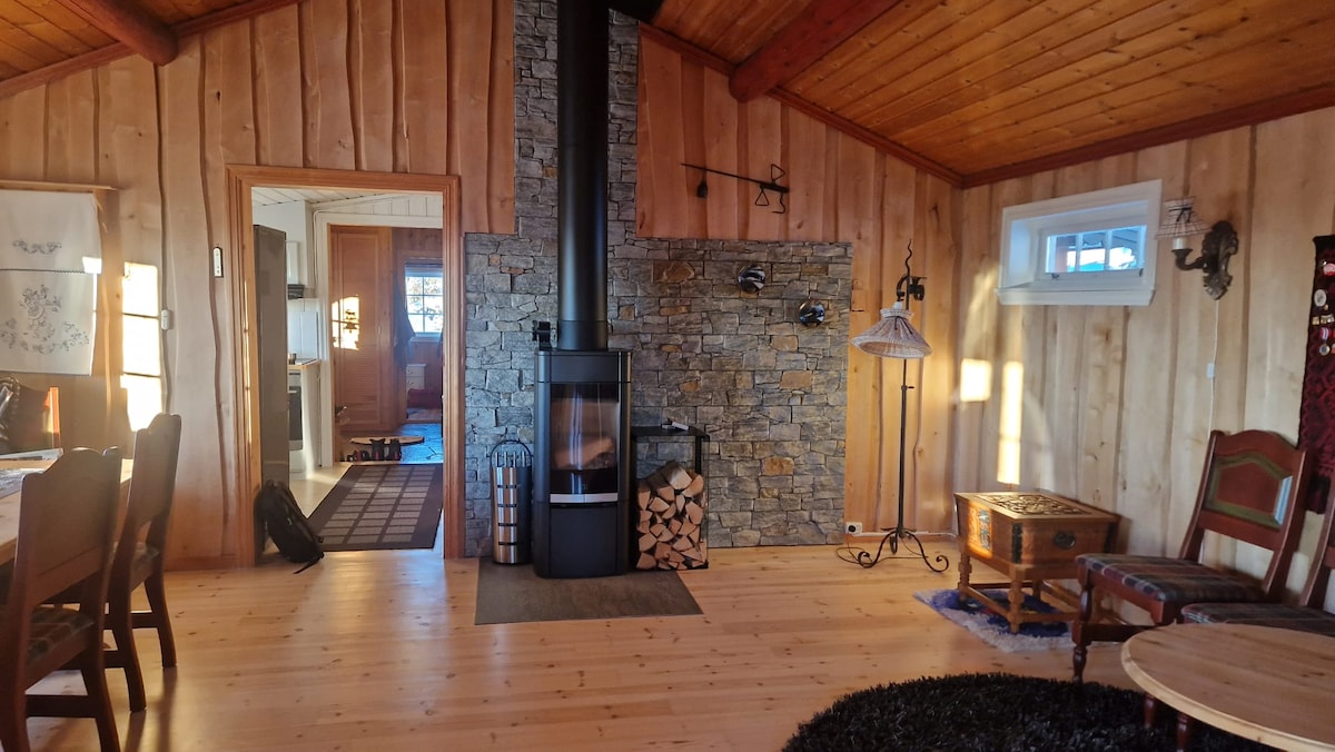Beautifully situated log cabin 10-min drive from the center of Lillehammer. Short distance to the Birkebeineren Ski Stadium, which offers an extensive network of hiking trails and cross-country skiing tracks. 15-min drive to Nordseter, about 20 minutes to Sjusjøen, both with excellent trails for hiking and skiing. The ski jumping hill is 3-minute drive from the cabin and offers a great view. 5-min drive to grocery store. For alpine skiing, Hafjell is 25 min away, and Kvitfjell is about 1 hour.