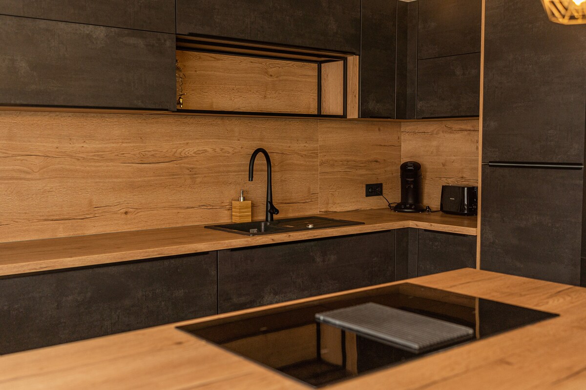 Ático #1 para huéspedes sofisticados: Sala de estar y cocina de tamaño de 110 metros cuadrados con techos altos, aspecto industrial, ventana para sentarse y diseño moderno 2 baños con duchas separadas y 2 baños 2 dormitorios con camas dobles grandes para una buena noche de sueño Sauna panorámica privada con vistas incomparables al lago El ático Ommi Kese es la opción perfecta para huéspedes o dos parejas amigables que buscan lujo, comodidad y una vista impresionante del lago Bigges.