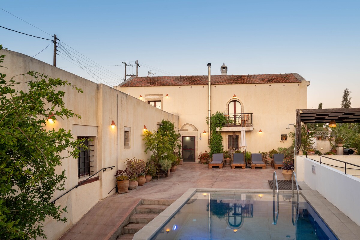Escapate a una villa exótica única en Myli Gorge, a solo 15 minutos de Rethymno. Esta villa de tres dormitorios combina la arquitectura tradicional de piedra con un ambiente cálido y rústico, y cuenta con una piscina natural única. Un sendero de 5 minutos te lleva a la villa, donde podés disfrutar de una comida en una taberna cercana o relajarte en un entorno tranquilo. Ideal para relajarse y explorar, con senderos para caminar y lugares históricos a poca distancia.