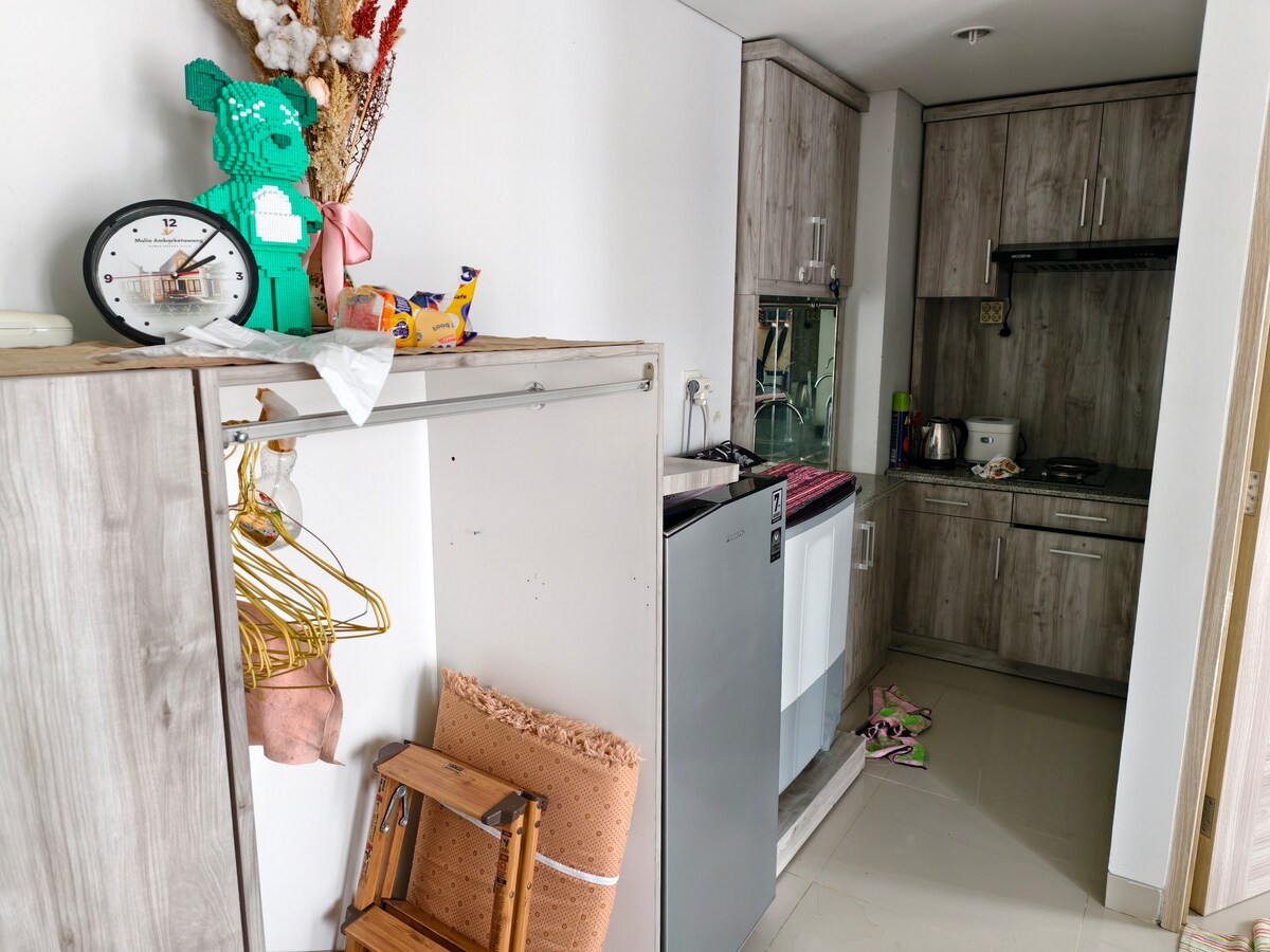 Acogedor apartamento de 24 metros cuadrados decorado con gusto en el corazón de Yogyakarta. La ubicación está cerca de la Universidad Gadjah Mada. ¡El mejor alojamiento a un precio asequible! Qué tenemos: Cama 2 en 1. Televisor inteligente de 43 pulgadas (Netflix) Wifi de hasta 20 Mbps. Ducha de agua caliente. Seguridad las 24 horas, 7 días a la semana. Restaurantes, lavandería, supermercados. Cocina bien equipada y servicios completos. Gimnasio, piscina y espacio común.