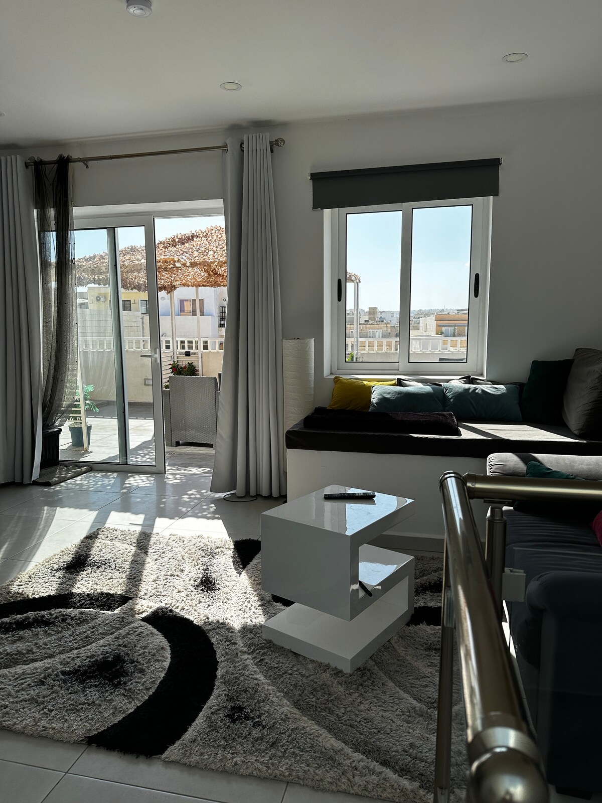 Relajate en el jacuzzi de la azotea. También hay una barbacoa y comedor. Perfectamente ubicado, en una zona residencial tranquila, pero a pocos pasos de todo: playas, mar, Lido, cafetería, restaurantes, tiendas, paradas de autobús. El ferry a La Valeta, así como otros barcos que te llevan a Comino, Gozo y otros viajes en barco están a unos 15 minutos a pie. Ubicado a solo 5 minutos a pie de la playa de la bahía de Balluta y San Julián. El aeropuerto está a 8 km de la propiedad.