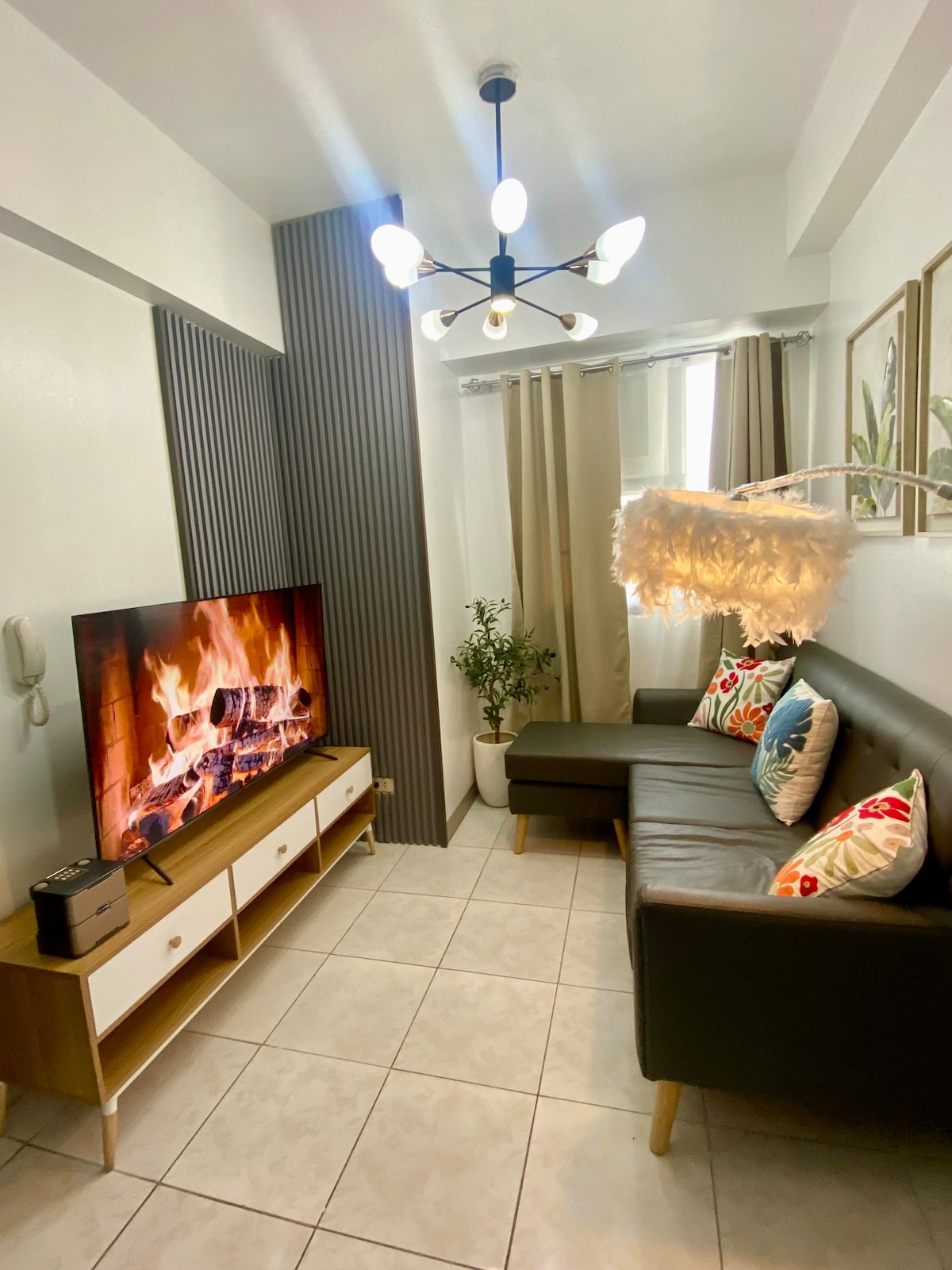 Brand New Oversized Studio Unit at the Spire! 2 Queen-sized beds perfect for families and groups! Get your much needed travel break in this unit with our huge 55" Smart TV with Netflix, fast 100Mbps WiFi, cold aircon and washing machine in the unit! Century mall and parking is just next door and the Poblacion entertainment area is just outside our doors! NOTE: The unit has undergone a color change and is now a purple/fuschia color, and the pics will be updated shortly.