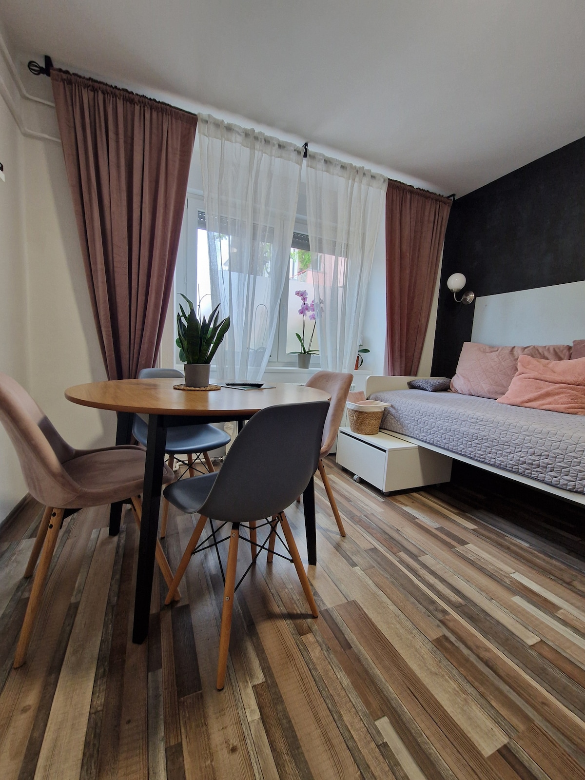 Al final de la calle en Postojna hay un apartamento único con un toque de amarillo, modernamente equipado con todo lo necesario para un viaje. En el interior encontrarás un amplio baño, una cocina totalmente equipada, una cómoda cama y un sofá cama (80x190 cm), adecuado para un adolescente o un niño. Hay una zona de estar afuera con vistas a Postojna y Sovič.