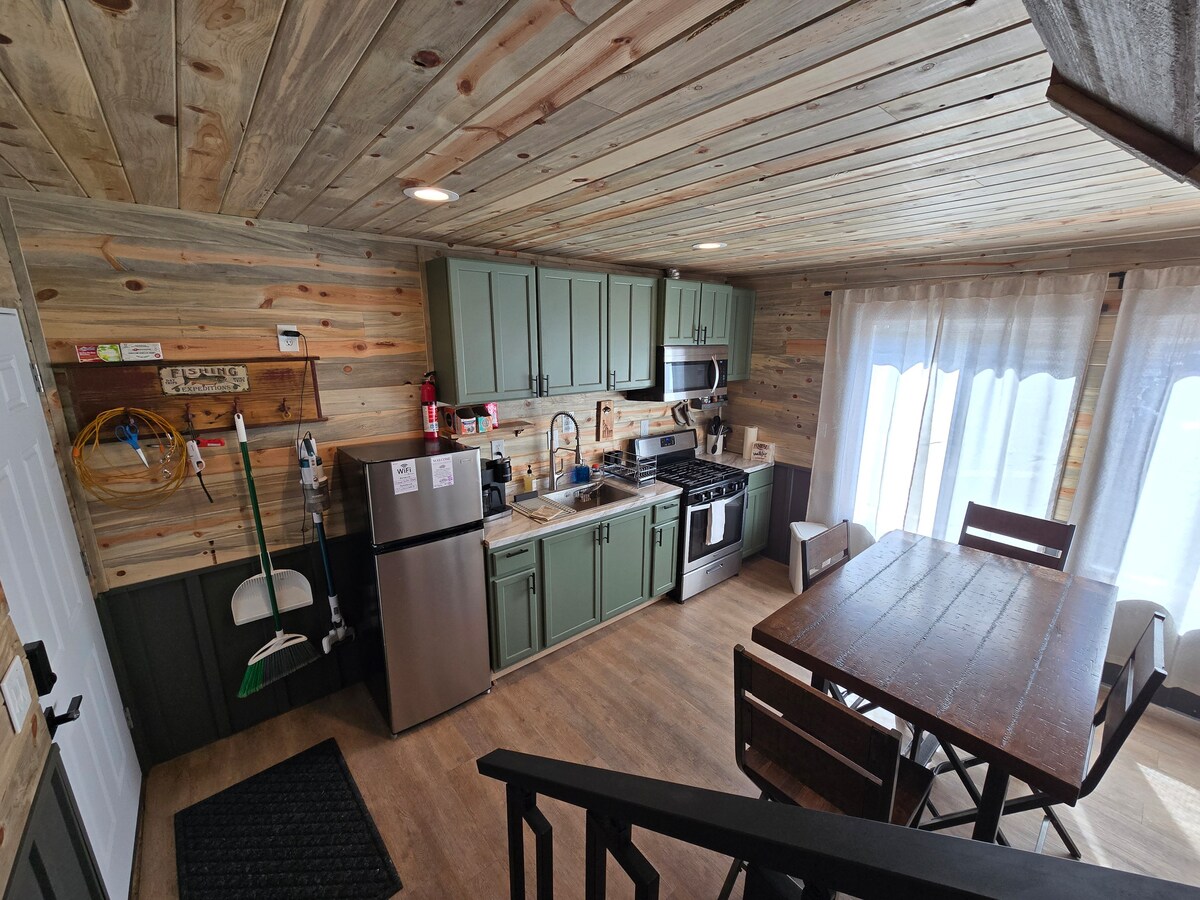 The Highway 13 cabin is located in our backyard. You will have the entire cabin to yourself. The cabin is small so plan accordingly. The main bedroom is up the ladder in the loft. Great for hunting or fishing trips as you will have a lot of room right outside of town with access to the forest or rivers. Our place is easily accessible and safe and secure!
