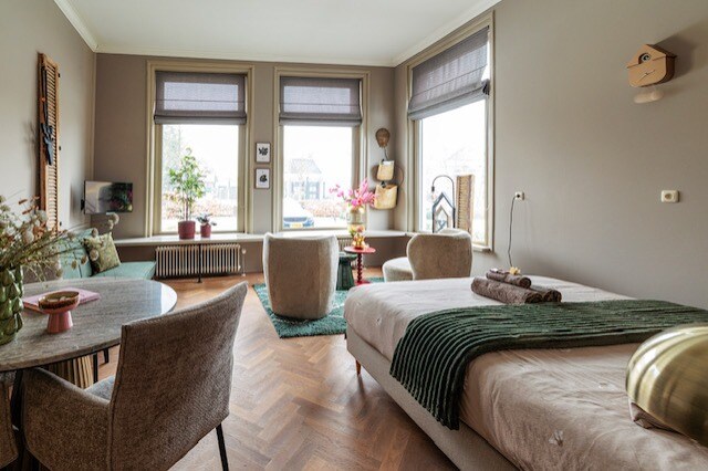 El alojamiento "Smederij Sterk" se encuentra en la antigua herrería de la ciudad de J. Sterk. El edificio monumental data de 1907 y está situado en el centro de la ciudad, cerca de museos, restaurantes, acogedoras calles comerciales y la estación. El alojamiento tiene su propia entrada, una sala de estar con cocina privada, un dormitorio y un baño privado con ducha y aseo. El alojamiento tiene vistas y está junto a una hermosa plaza donde también se puede sentar al aire libre.