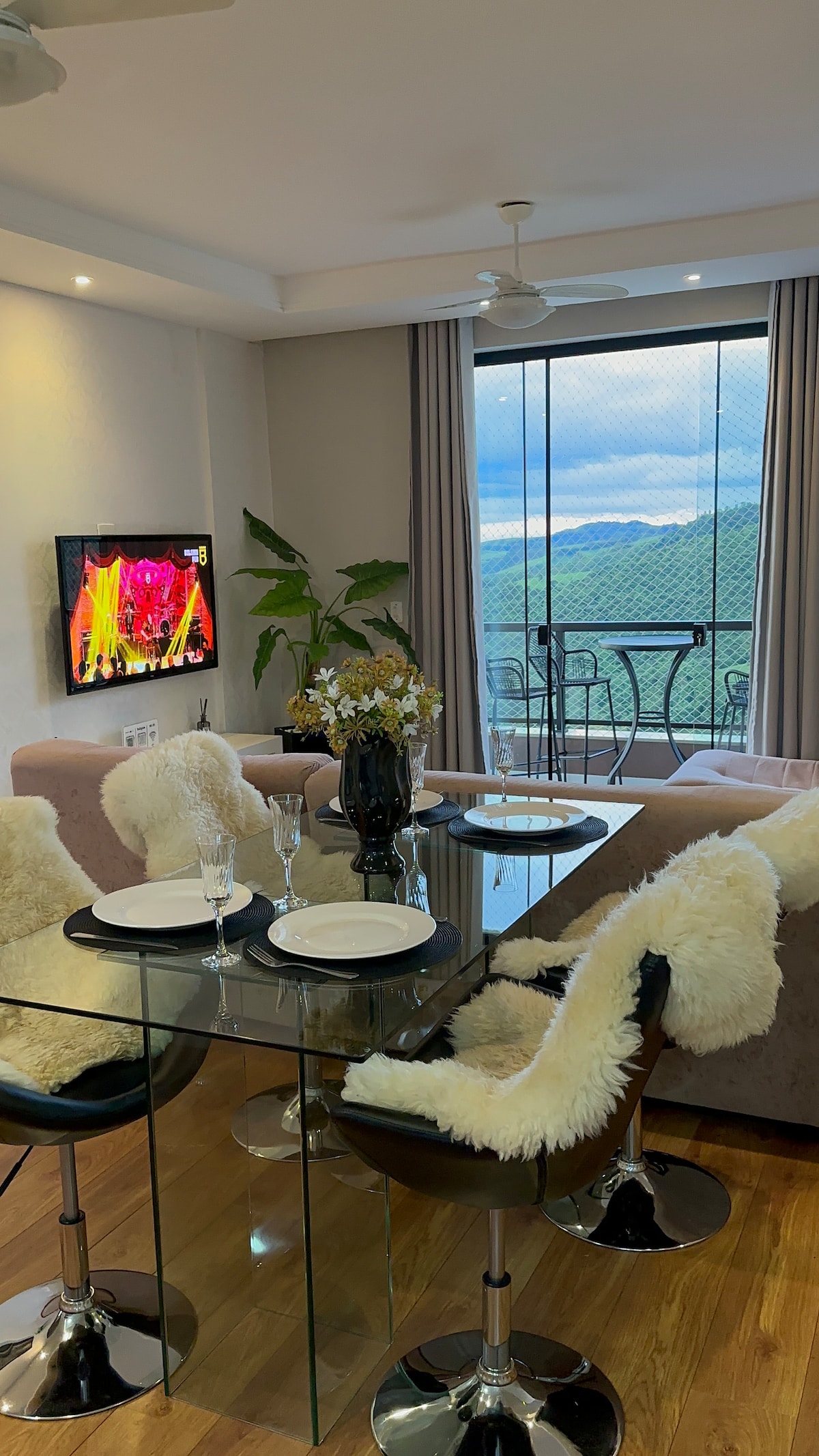 Uma vista maravilhosa bem decorado um lugar tranquilo e bem-localizado. Apartamento com dois dormitórios 2 banheiro Sala Cozinha americana Área de serviço Varanda com vista para as montanhas incrível 1 vaga de garagem coberta Condomínio com portaria Elevador e escada Quiosques com churrasqueira Quadra poliesportiva Jardim e horta. Bairro tranquilo 10 minutos do centro da cidade. Se você está procurando um apartamento tranquilo, você encontrou o lugar certo Piscina fechada