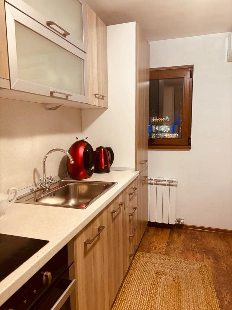 Step into a bright and cozy space in the heart of Sofia. Guests love the colorful living room, the fully stocked kitchen that makes cooking a breeze, and the glassed terrace with incredible views of Vitosha Mountain. The two bedrooms are peaceful and open onto private terraces, perfect for relaxing. With a modern bathroom, laundry facilities, and easy self-check-in, it’s a space that feels like home. Everything you need is just a short walk away, making this the ideal spot to explore Sofia.