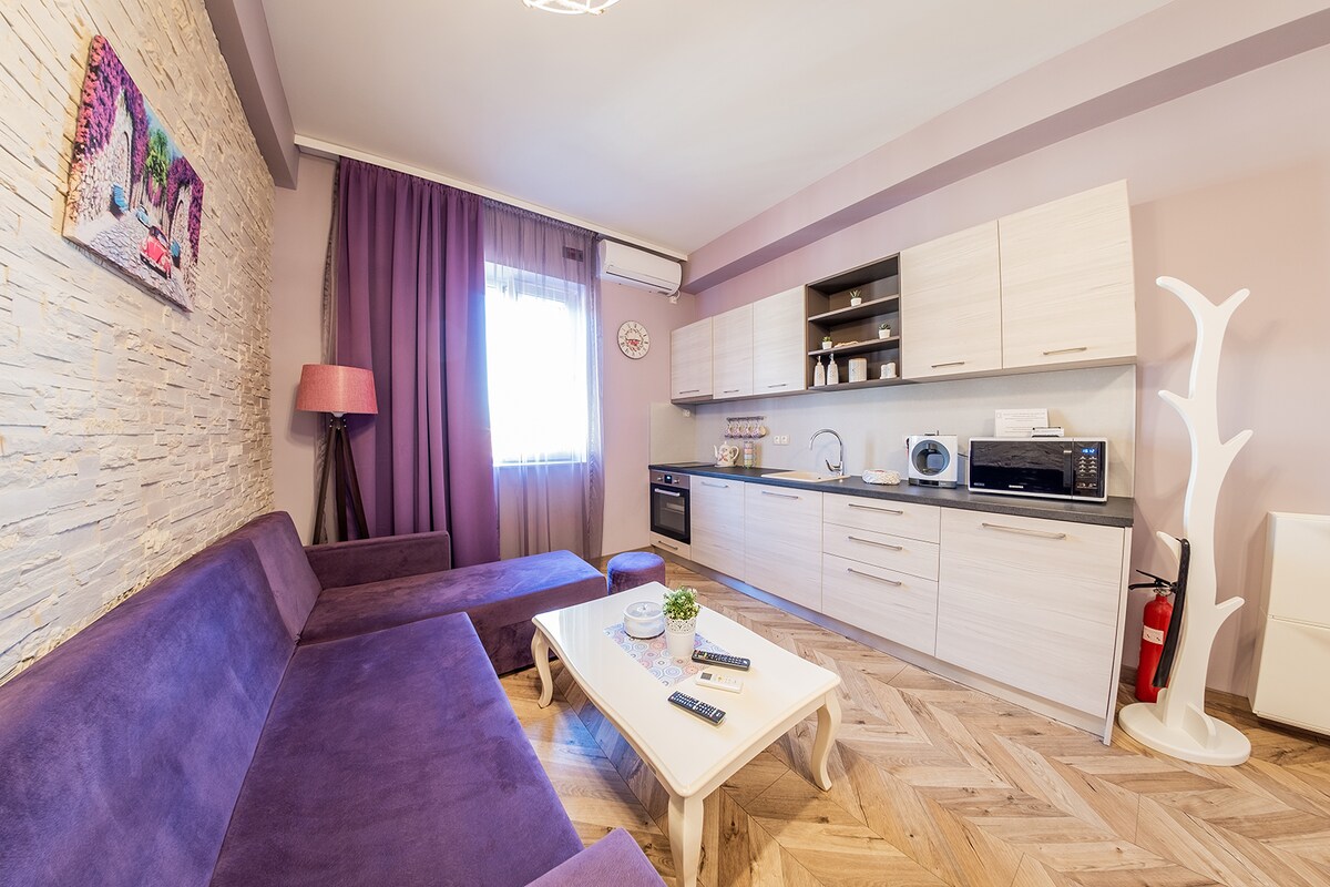 Violet es un apartamento cómodo y práctico. Incluye una habitación, baño, cocina americana , zona de estar. El sofá se extiende. La conexión wifi es muy rápida, televisión. Violet te ofrece todas las condiciones necesarias para alojarte en Sofía. Está cerca de la estación de metro, supermercados y excelentes reataurants. La ubicación está en el centro de Sofía, por lo que puedes dar algunos paseos por los lugares arqueológicos.