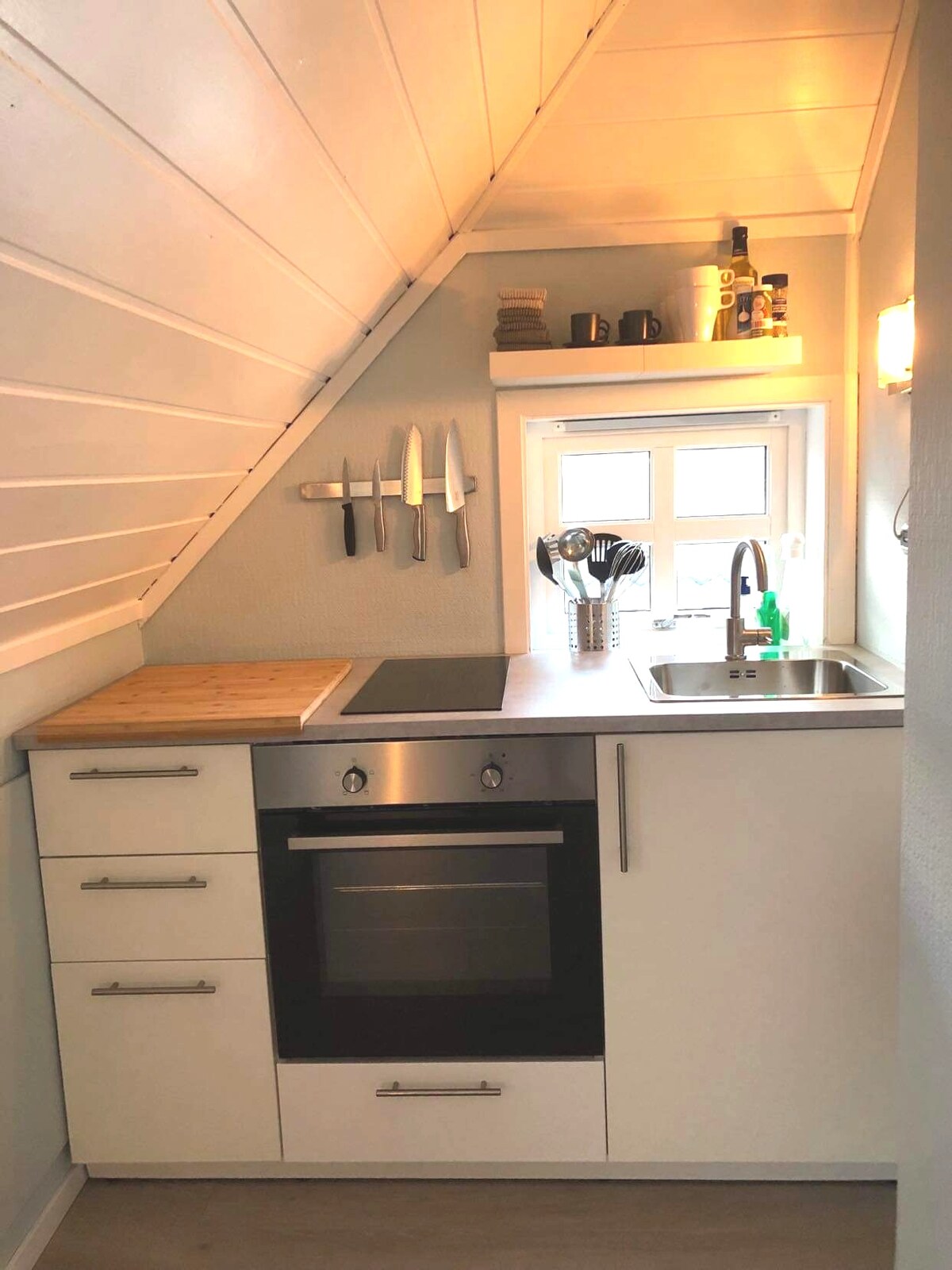 4 dormitorios, 2 baños y 2 áreas de estar de las cuales un comedor. Un dormitorio en el segundo piso es una habitación familiar con cama matrimonial y sofá cama. Dos dormitorios tienen literas familiares con camas de 180 cm en la planta baja y 90 cm en la planta alta. El último dormitorio tiene una cama doble normal. Comedor con espacio para 12 personas. Calefacción con cables de calefacción en el piso, bomba de calor y estufa de leña. Red inalámbrica (fibra). AppleTV disponible.