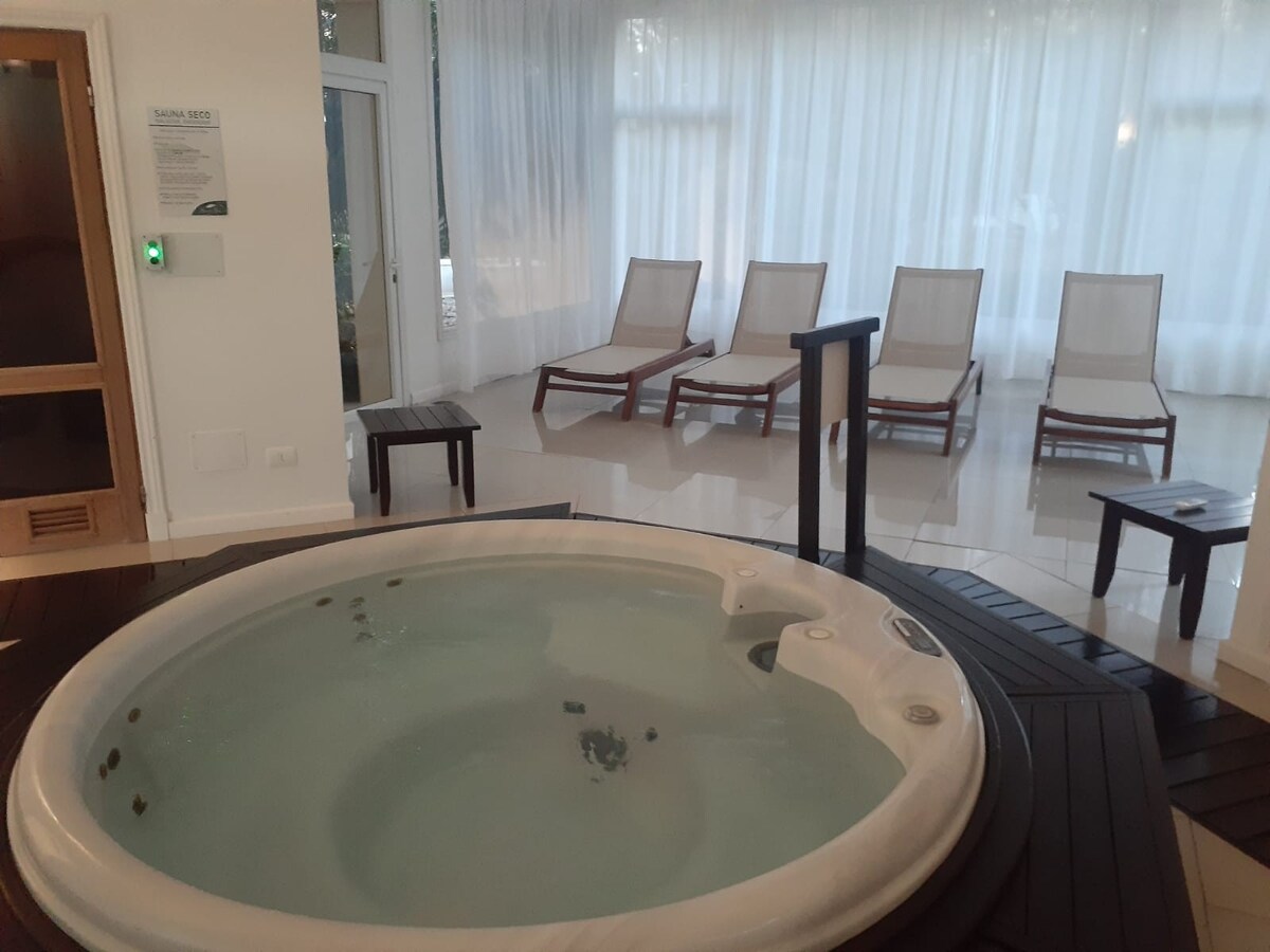 EN MAYO Y JUNIO NO FUNCIONAN LAS ÁREAS RECREATIVAS DEL COMPLEJO (PISCINAS, GYM, CANCHAS, ETC). Apto en Green Park Private Club, dentro de Solanas Vacation Club (Torre L). Rodeado de verde y a minutos de la playa. Ideal para vacaciones en familia o con amigos. Aire puro, descanso, caminatas y diversión. Acceso al gym, piscinas, sauna y las actividades recreativas de Solanas para todas las edades. El acceso a la Crystal Lagoon no está incluido, en caso de querer ir se saca un pase ahí mismo.