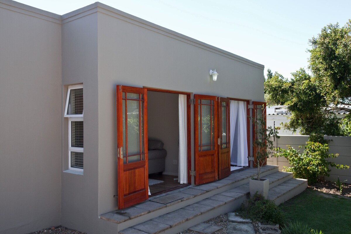 Situada en el barrio tranquilo y céntrico de Stuarts Hill Somerset West. Entrada independiente a nuestra casa de campo con jardín independiente con acceso a tu propio patio privado, barbacoa y piscina compartida y tranquilo jardín verde sombreado. Adecuada para vivir en interiores y exteriores. Aparcamiento gratuito dentro de una propiedad cerrada segura. Serás recibido por tus anfitriones Mark y Nicky. Se proporciona un buzón para las llaves cuando te vayas. Ubicación céntrica a la playa, rutas del vino y a poca distancia a pie de restaurantes.