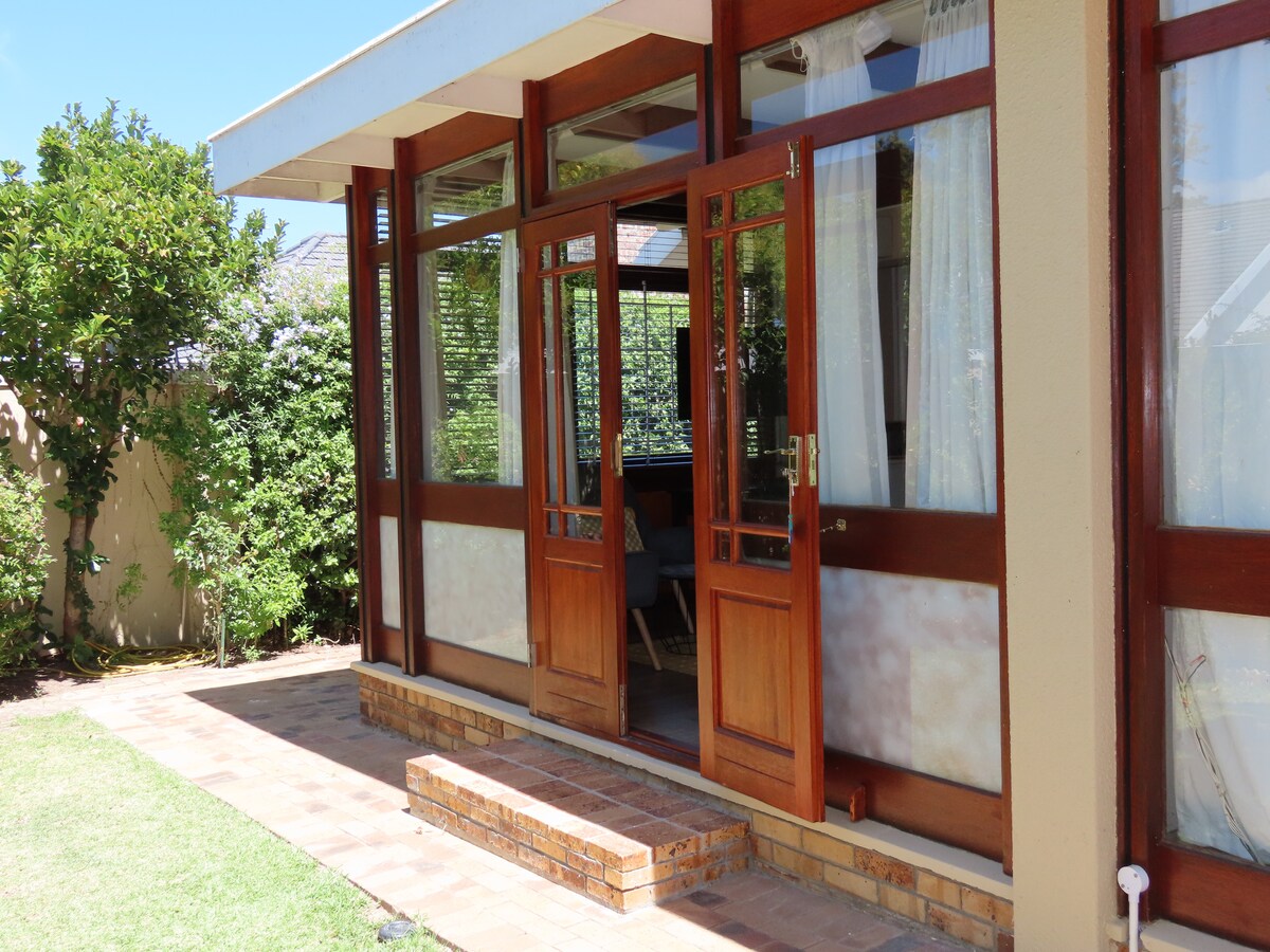 The Southern Cross Room Separate entrance to our self catering, light and airy, air-conditioned room. French doors open to your own private garden. Outside there is a barbecue, as well camp kitchen style washing up and gas cooking facilities. In the back of the property, enjoy a shared pool & garden. Shared area is the green bench under the trees. Free secure parking inside gated property. Keyless entry and exit. Central to beach , wine routes, nature reserve & easy walk to restaurants.