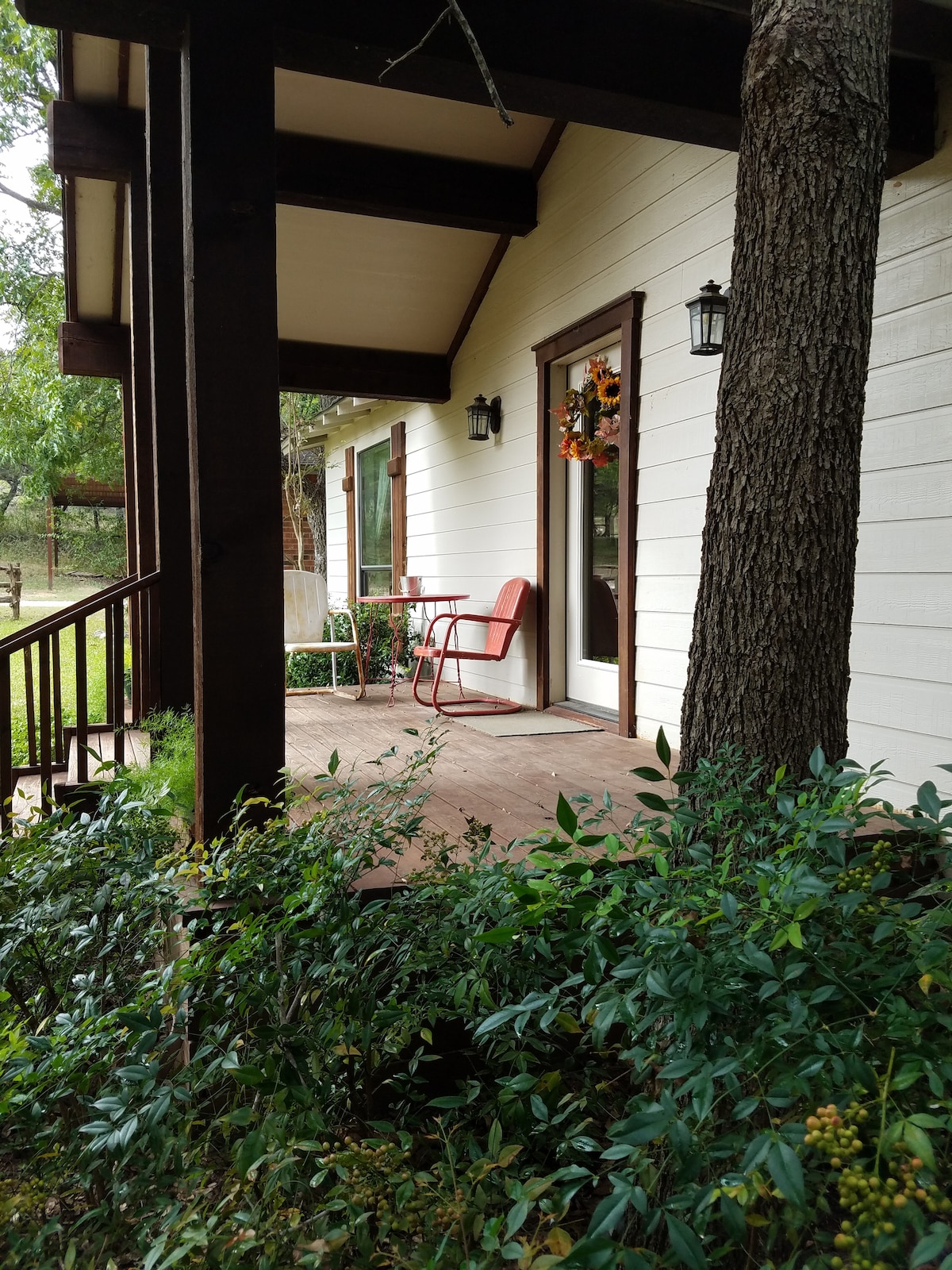 Experimenta la paz y belleza mientras te hospedas en una granja en Glen Rose A 10 minutos del centro de la ciudad. A 25 minutos de Fossil Rim. A 20 minutos del parque estatal Dinosaur Valley. Verás y oirás patos, gansos, pollos, cerdos, ovejas y cabras. Nuestros pavos reales deambulan libremente y podrían venir a sentarse en tu porche. La tienda de la granja en nuestra granja ofrece carnes y productos de cultivo local en temporada, así como miel, huevos y otros artículos. No se admiten mascotas.