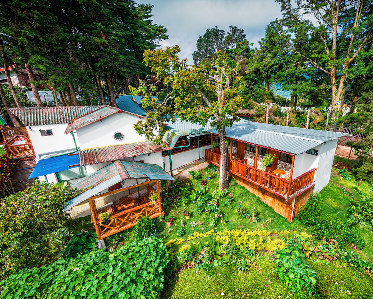De tu casa a tu HABITACIÓN. Relájate y disfruta de un edén creado para ti. Es una propiedad de 17,000 m2, y está en medio de una agradable zona cafetalera, clima exquisito y vistas preciosas. A 400 m de la carretera encontrará tranquilidad, belleza y seguridad. Cerca de restaurantes. Los pueblos de Apaneca y Ataco a 5 minutos. Variedad de atracciones turística. Habitaciones con camas súper cómodas e instalaciones encantadoras. Independientes, amplias y con su baño privado. Ho hay cocina.