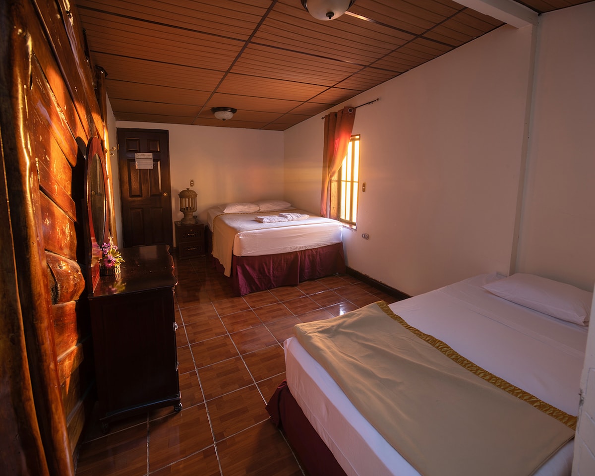 Habitación ideal para pareja que busca descanso y privacidad en un entorno tranquilo. Cuenta con cama matrimonial, baño privado y un espacio cómodo para relajarse. Es perfecta para desconectarse del ritmo cotidiano y disfrutar tiempo en pareja sin distracciones. Incluye desayuno dentro del Resort para comenzar el día con calma y buena energía.