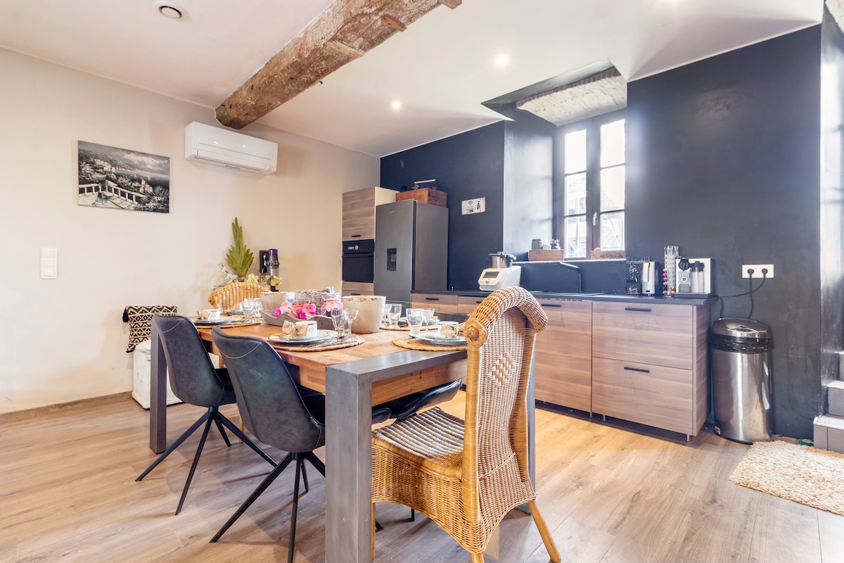 Loft de 50 m², recién reformado, muy acogedor y luminoso, en el segundo piso de una casa antigua, con carácter, situada en el corazón de un pueblo clasificado, en una calle típica y tranquila. Cocina equipada, zona de estar con pantalla plana, baño con bañera en isla, aire acondicionado...