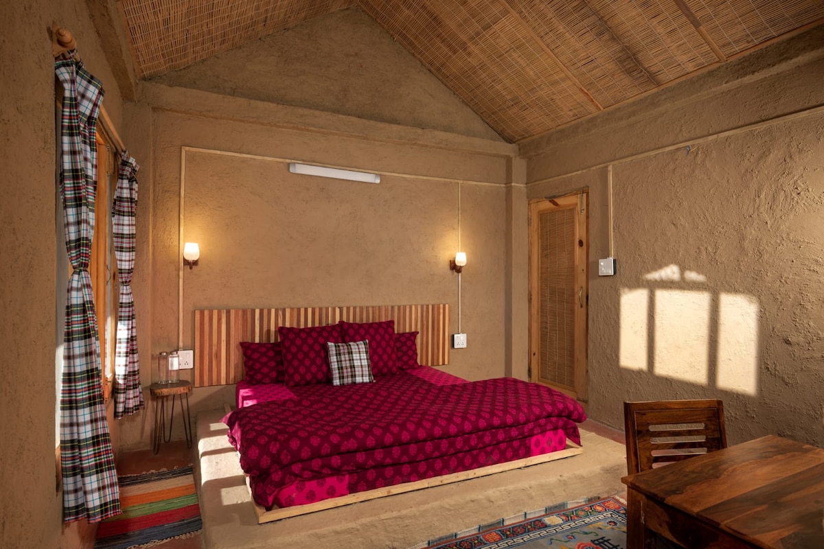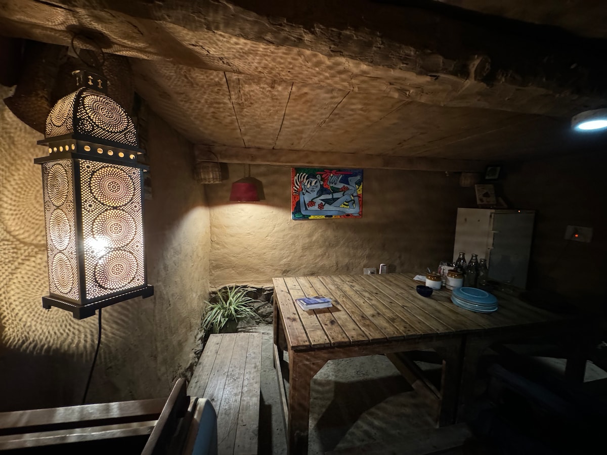 La casa de los Dalton en Tirthan está ubicada entre un pequeño bosque de pinos, junto a un pequeño arroyo, lejos del ajetreo y el bullicio de la ciudad. La acogedora casa de campo de 4 habitaciones está hecha de paredes de roca, barro y materiales naturales terrosos. Para llegar a nuestra encantadora morada, es necesario dar un paseo cuesta abajo de 10 minutos a través de un pintoresco bosque de pinos. Empoderamos a las mujeres locales de Himachali para que nos ayuden a hospedar a nuestros huéspedes, mostrando la cultura de Himachali.