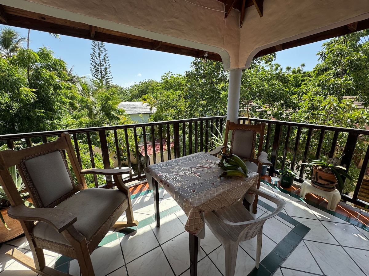 Estudio moderno y aireado en el tercero piso de una casa bien cuidada en medio de un jardín tropical en el centro de Cabarete, pero justo en el mar, en una zona tranquila. Supermercado a solo 50 m, Bahia de Cabarete, todas las tiendas, restaurantes y cafés a poca distancia. Se puede alojar un máximo de un niño de hasta un año, además de una tarifa de US$ 10 por noche, hay una cuna disponible.