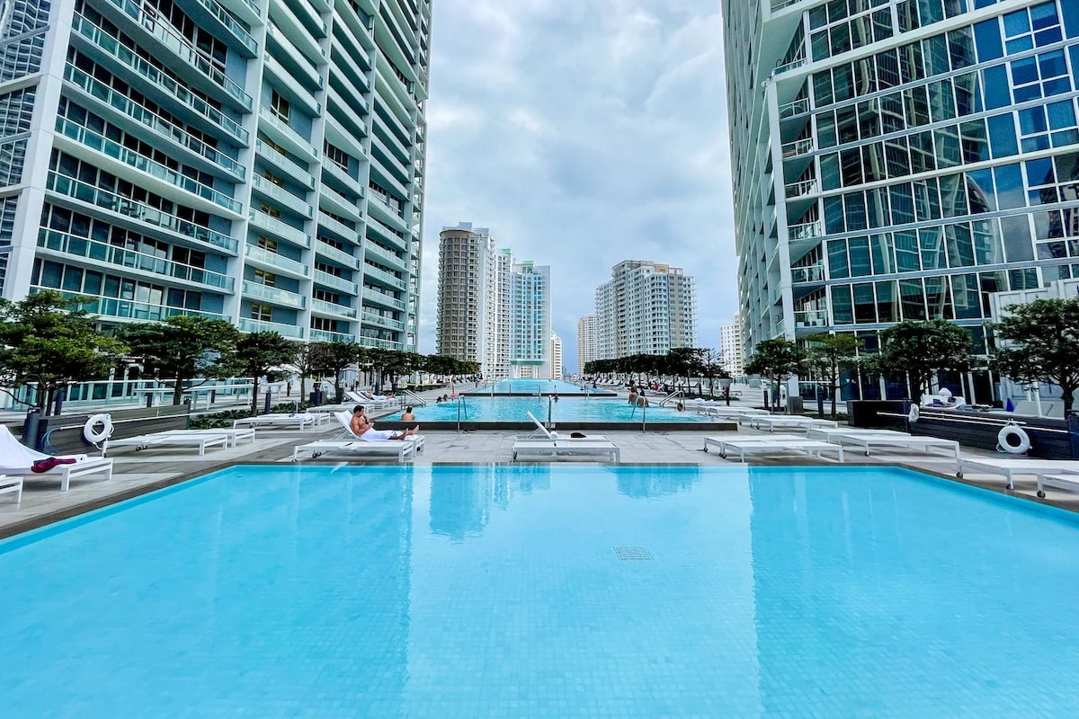 Stunning one bedroom condo located in the best area of Brickell just minutes away from Brickell City Centre and Mary Brickell Village with restaurants, bars, shops and entertainment. About this Space -Approx.825 sqft of natural light filled space with gorgeous bay and city views and a large private balcony with dining table and large patio couch -High-speed Wi-Fi -1 free assigned parking spot -Pool, jacuzzi, steam room, game room, state of the art gym, and business center