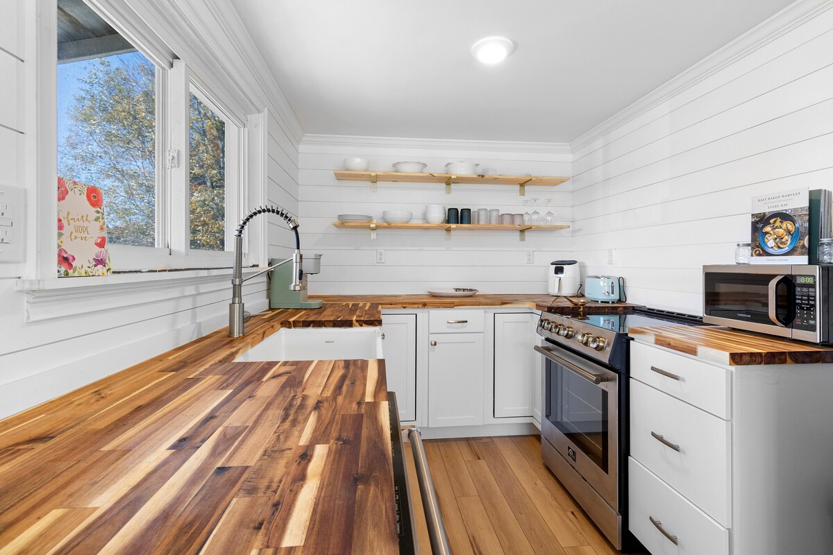Este es un espacioso apartamento de 1000 pies cuadrados en mi casa de la infancia que ha sido renovado en la primavera de 2020 con un tema costero moderno y bien equipado con artículos vintage. Tenemos una cocina bien surtida, un acogedor comedor/sala de estar con un televisor Roku de 43 pulgadas y lavandería completa. Prueba un pastel del panadero profesional al otro lado de la calle, da un paseo por la calle hasta Crockett's Beach o ve a dar un paseo por el centro de Rockland. Es posible realizar el registro de entrada a distancia.