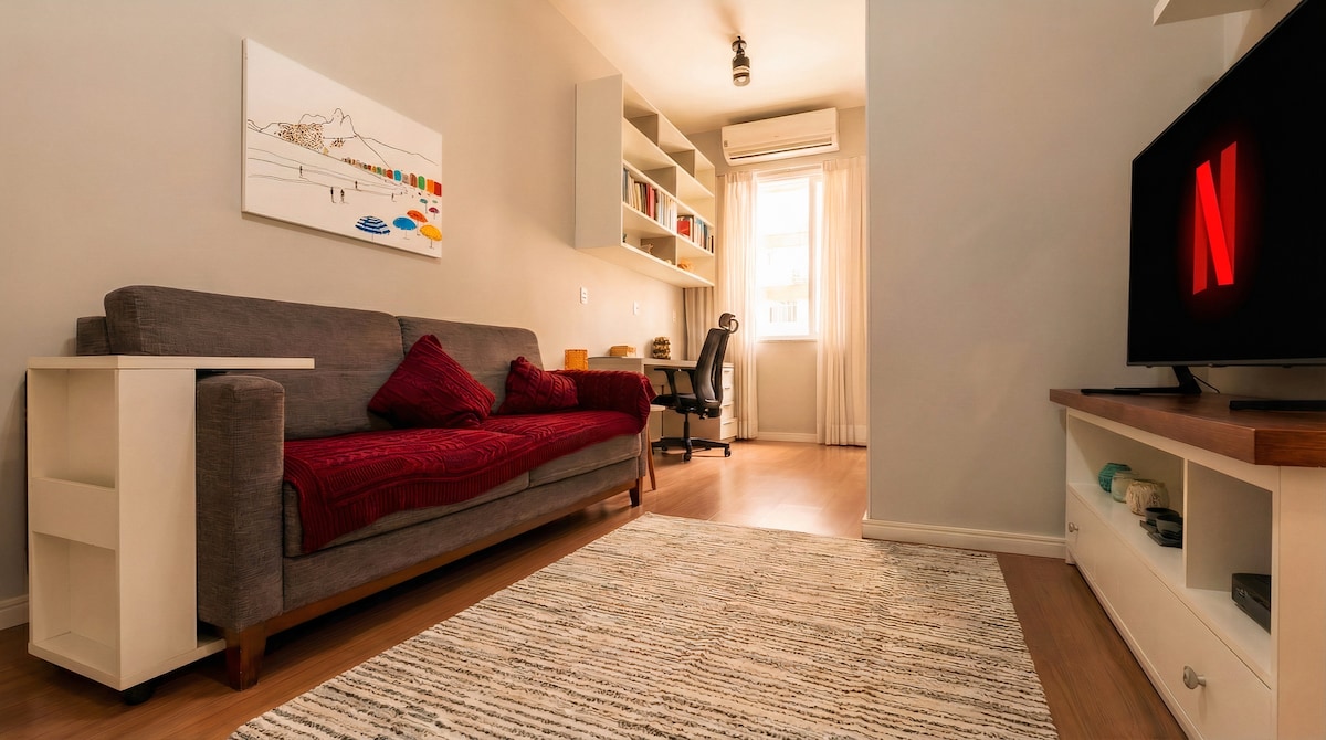 Departamento inspirado en el concepto de loft boutique con vista al mar y a 100 metros de la playa de Copacabana. ¡Muy moderno y funcional! 100 % con aire acondicionado, ¡con aire acondicionado dividido en todas las habitaciones! El diseño y la decoración tienen la firma de la reconocida oficina AF Arquitectura, premiada en numerosas ocasiones en Casa Cor. ¡Toda la comodidad, el lujo y el refinamiento que los huéspedes merecen! ¡Quédate con un Superanfitrión! ¡Ven a la playa de Copacabana! Alan Países Bajos