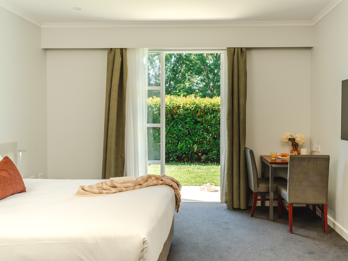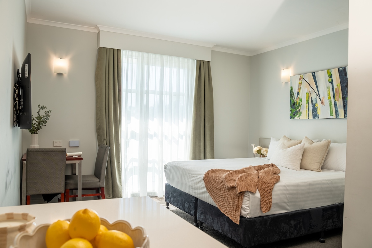 Designed with accessibility in mind, this generously sized Studio Apartment features a queen bed and an ensuite with a walk-in shower and accessible fixtures. You’ll have a fully equipped kitchen with a refrigerator, cooktop, microwave and dishwasher, plus tea and coffee facilities. The apartment also includes a television for in-room entertainment.