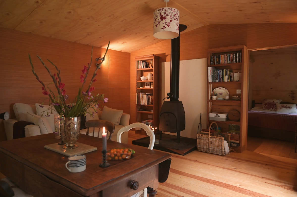 Ubicada en el pueblo de Amberley, al pie de los Downs. La cabaña de madera ecológica construida a mano se encuentra en la esquina sombreada y lejana de la parcela de 1 acre, orientada al sur hacia las tierras bajas, a través de campos y un pequeño estanque donde se reúnen las aves acuáticas. La cabaña está llena de encanto rústico. Es un lugar completamente aislado y tranquilo, ideal para los amantes de la naturaleza y aquellos que buscan una escapada a corto plazo del ajetreo y el bullicio de la vida en la ciudad. Ofrece un refugio perfecto para escritores o artistas.