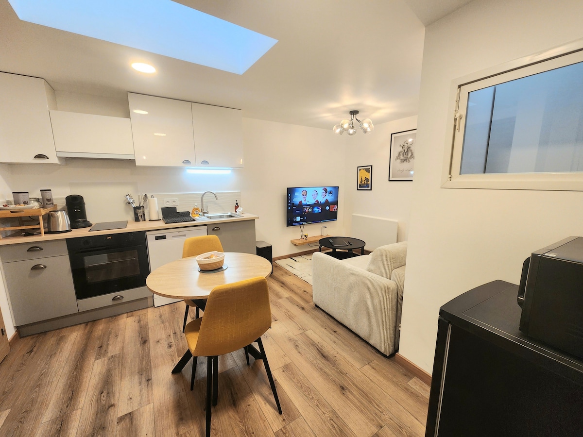🌿 Charming 1-Bedroom Apartment 🍀 With free parking ✅️ ➡️ Located in an old building in the heart of the Madeleine district in ⚜️ Angoulême ⚜️ Train Station 🚆 : 🚶7 min City Center: 🚶♂️12 min All shops/public transport: 🚶🏽♀️2 min 😴 Bedroom - Queen-size bed & 🔅Lighting 🔆 adjustable via remote control ⚙️ 💤 Sofa bed 🛜 Very high-speed Wi-Fi 📺 55" Smart TV 🎧 Home cinema 🍿🎥 NETFLIX 🍺| ⛱️Terrace (🔜 Summer 2026) Adding 10€/person/day if booking for 2 with 2 beds