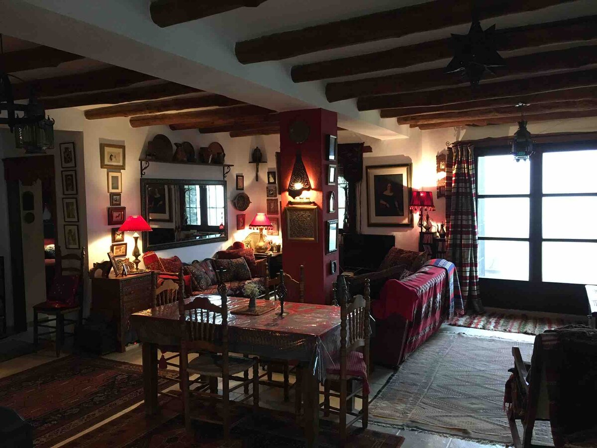LGBTQ friendly, Traditional Alpujarran house of 80 sq m set in paradise garden and orchard of 3000 sq m, located just outside Bubion village, short walk to neighbouring village, Capileira. Ancient mulepaths lead in all directions directly from the house. Perfect location for hiking, riding, cycling or relaxing in pure mountain air. Eagles, bee-eaters, and wild ibex can all be seen from the garden. Legally I can only rent to 3 guests (although there are 2 double beds). WiFi for working.