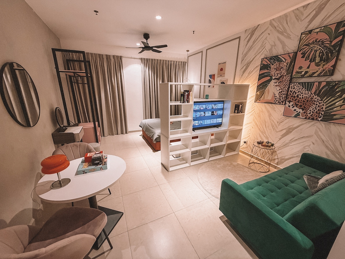 Un estudio urbano clásico moderno y lujoso. Este acogedor estudio tiene capacidad para 2-3 personas y está estratégicamente situado encima de la icónica galería comercial Atria, en el corazón de Petaling Jaya. A poca distancia a pie encontrarás una gran variedad de conocidos establecimientos de comida y bebida, tiendas minoristas, supermercados, farmacias, cines, etc. Sin duda será uno de los mejores y más inolvidables lugares para alojarte. ¡Disfruta de unas lujosas vacaciones sin gastar mucho dinero!