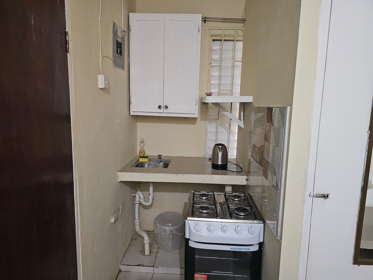 Cozy, Convenient and Close to everything you will need. This self-contained studio is situated in a particularly peaceful neighbourhood, centrally located and right next to a park. These set of apartments started out as an oasis for students who needed a place to stay in the city next to the two biggest Universities in Jamaica. It has blossomed into a haven for anyone who desires a peaceful and enjoyable stay (long or short) , and true Jamaican Urban living.