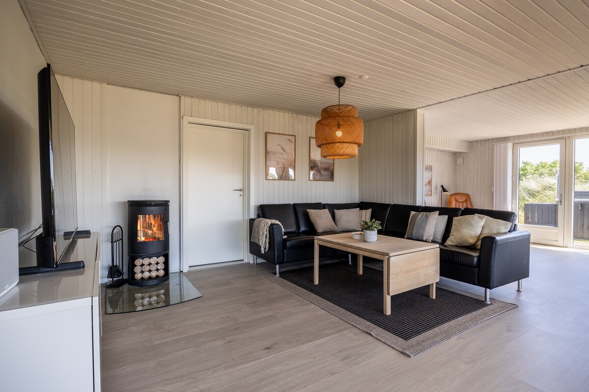 ¡Bienvenido a nuestra acogedora casa de campo con vistas impresionantes del paisaje de dunas de la costa del Mar del Norte! Relajate frente a la chimenea de leña, disfrutá de las delicias danesas en la cocina abierta y regalate horas de relax en el sauna o en el jacuzzi de leña en las dunas. Un lugar perfecto para alejarte de todo y experimentar la belleza de la zona. ¡Esperamos recibirte pronto! También es ideal para windsurfistas. Cerca de la zona de windsurf.