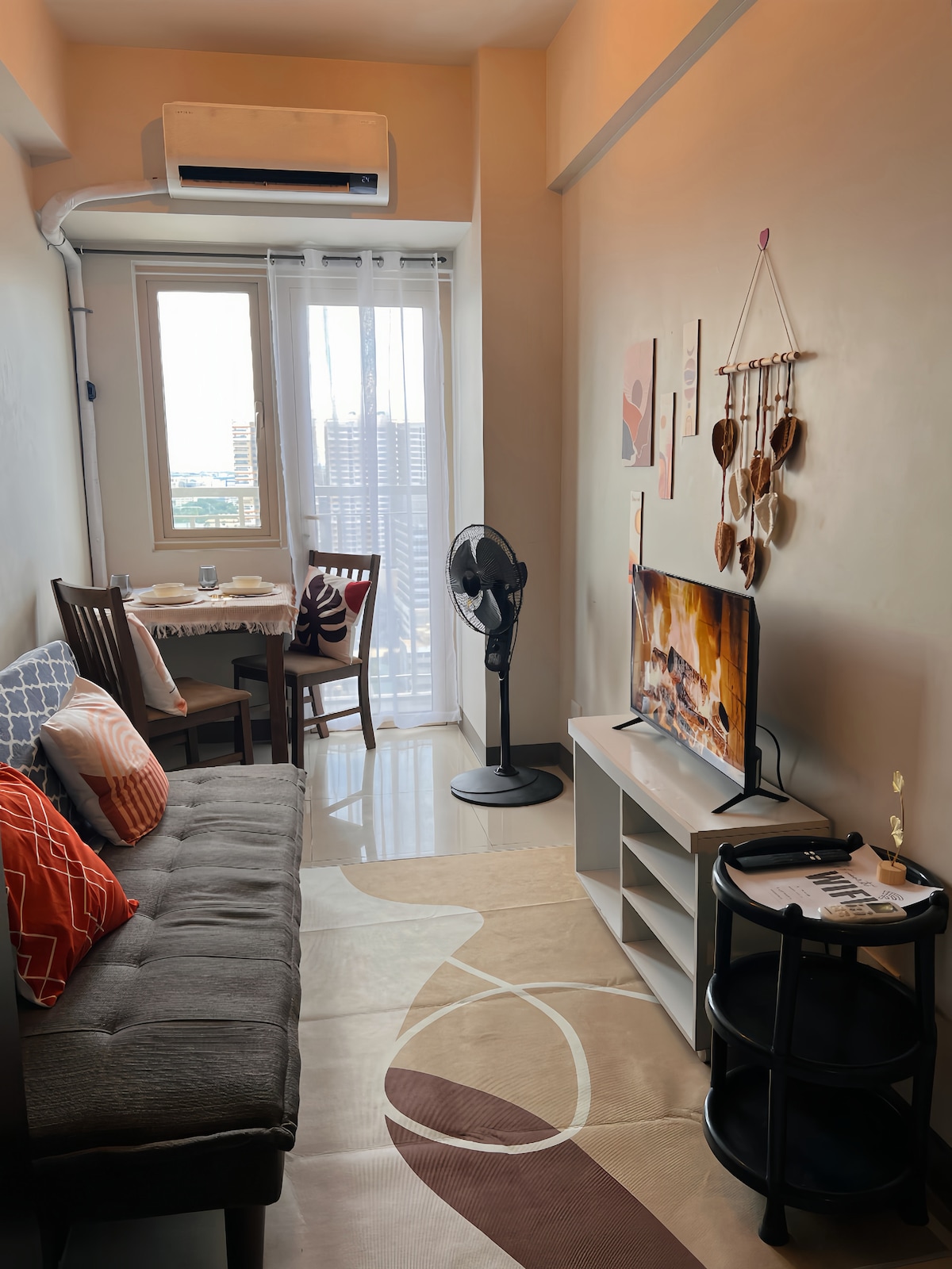 ¡Estética, instagrameable y digna de Pinterest! Bienvenido a esta acogedora suite de inspiración bohemia ubicada en S Residences, 8th Floor-Tower 1, MOA Complex. Justo en el centro de la acción y, al mismo tiempo, te ofrece espacio para relajarte y desconectar. Esta suite es perfecta para tus necesidades de estancia vacacional y de trabajo. Ya sea que estés comprando en IKEA, comiendo deliciosas comidas, viendo conciertos en MOA Arena o simplemente quieras ver Netflix y relajarte, esta suite de condominio es exactamente lo que necesitas.
