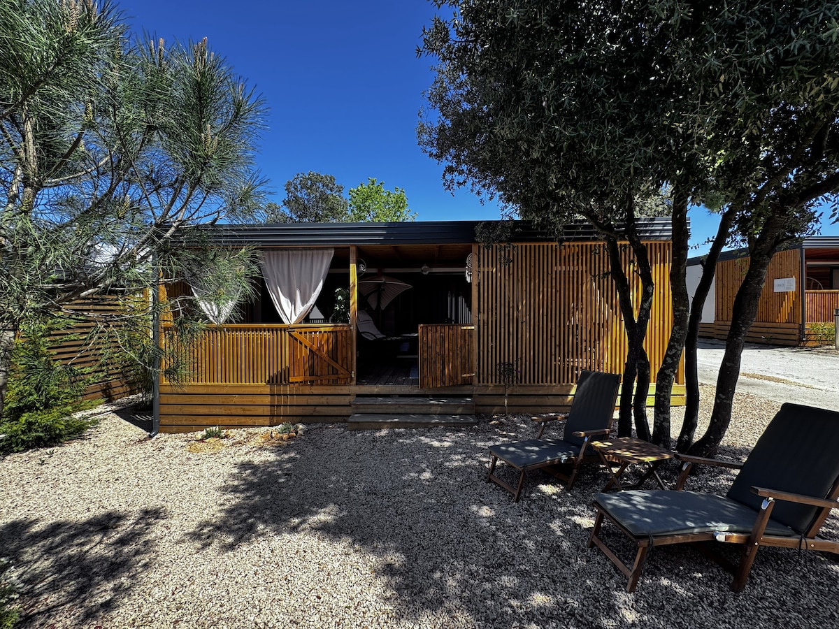 Bungalow de madera de una habitación con tres camas. Se ofrece una cama adicional bajo petición. Duerme en la naturaleza y en un entorno tranquilo bajo la majestuosa montaña Velebit. Las instalaciones sanitarias están equipadas con inodoros, lavabos y duchas, agua caliente. Piscina, disfrute.