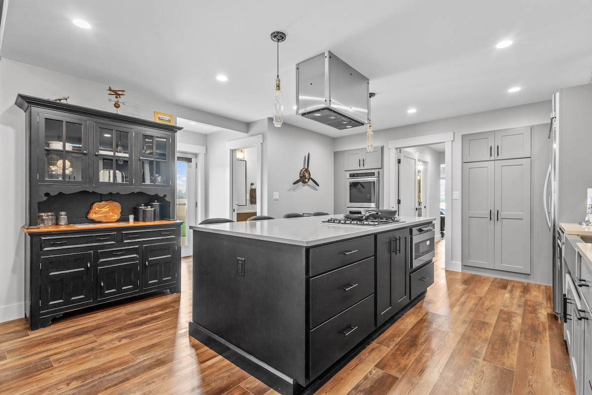 ¿Sueñas con una escapada aérea exclusiva? Esta impresionante construcción nueva está diseñada para pilotos, entusiastas de la aviación y familias que buscan una experiencia verdaderamente única. Vuela tu avión y estaciona en el lujoso hangar de estilo showroom, ¡perfecto para varios aviones! Este refugio construido a medida cuenta con tres amplios dormitorios y 3,5 baños, un bar completo, mesa de billar, mesa de póquer y una acogedora chimenea al aire libre. Es la escapada de fin de semana perfecta para familias, parejas o grupos de amigos.