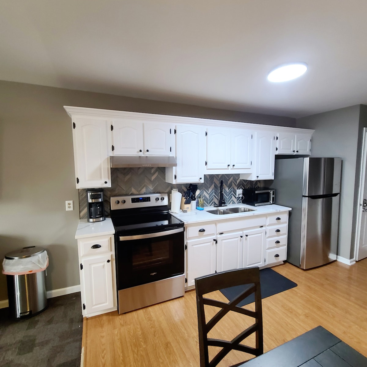 Este apartamento remodelado de 1 dormitorio y 1 baño con sofá cama tamaño queen se encuentra en el centro de North Utica, a poca distancia del impresionante Starved Rock State Park. El apartamento cuenta con un diseño interior moderno y elegante, con mucha luz natural entrando a través de grandes ventanales. El dormitorio incluye una cómoda cama tamaño king. La cocina y el baño han sido completamente renovados con nuevos accesorios y encimera de cuarzo en esta cocina totalmente equipada.