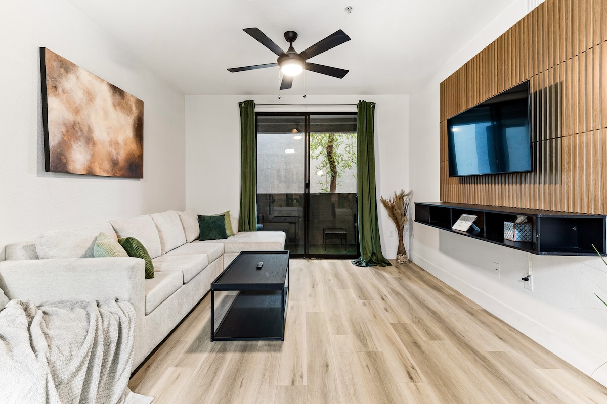 Los 3 mejores cumplidos para los huéspedes: -> Espacio impecable y elegante que coincide con las fotos -> A poca distancia a pie de Tempe Town Lake, restaurantes y parques -> Comunicación amigable y rápida de BluKey Stays ✨Disfrutá de lo mejor de Tempe con comodidad y estilo Ya sea que estés de visita para una escapada romántica, un viaje de negocios o una aventura familiar, este departamento ofrece la combinación perfecta de paz, comodidad y servicios. A solo unos pasos de Tempe Town Lake y ASU, estás cerca de la acción, pero disfrutas de un espacio tranquilo y cómodo para relajarte.