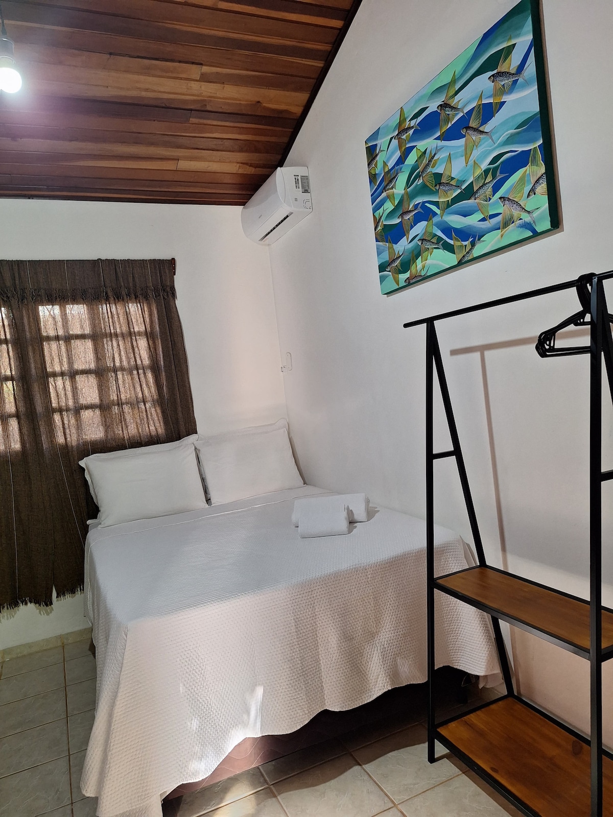 Suite con estacionamiento cerrado, 1 cama doble, 1 cama individual, colgadores de hamaca, WIFI, SMARTTV, aire acondicionado, COCINA COMPLETA COMPARTIDA arriba en mi casa, a 200 m del CENTRO COMERCIAL CARIRI, a 100 m del autobús, a 300 m de la estación de autobuses. Ropa de cama y toallas. Garaje con puerta motorizada para tu seguridad. La cuarta persona va a dormir en una hamaca o un colchón.