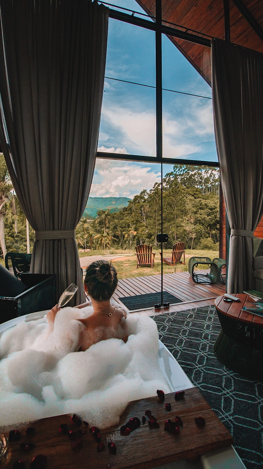 Cabana com hidromassagem e vista para a montanha