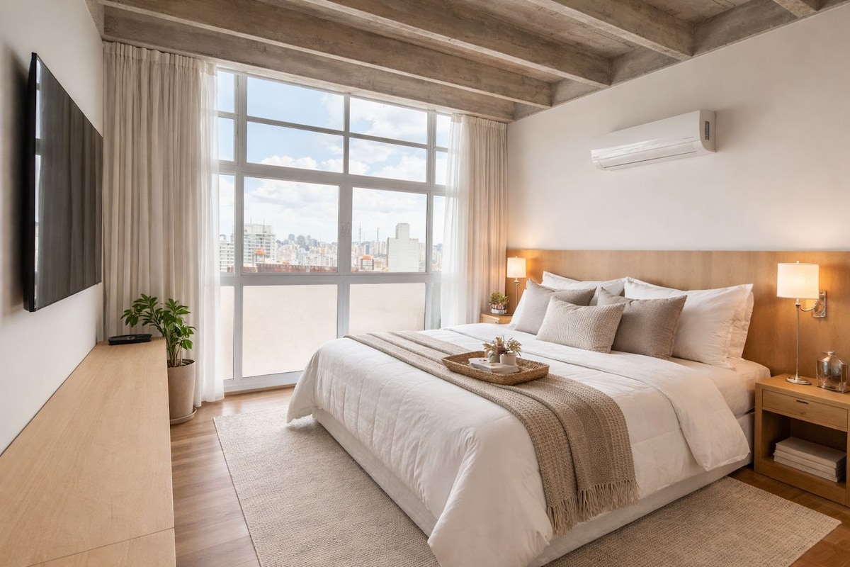 *Parcele em 6x sem juros* Stúdio feito para você, colado com a estação República do metrô. Vem para SP a lazer ou trabalho? Este é o lugar! Fechadura eletrônica Tomadas USB Roupas de cama e banho Cozinha completa Lazer da piscina, sauna e jacuzzi no terraço (25º andar) Salão de jogos com sinuca e academia logo na entrada! Janelas/varanda anti-ruído. Banho excelente devido a aquecimento central. Varanda aberta para uma vista deslumbrante do 22o. andar. Posto de segurança 24 hrs no prédio.