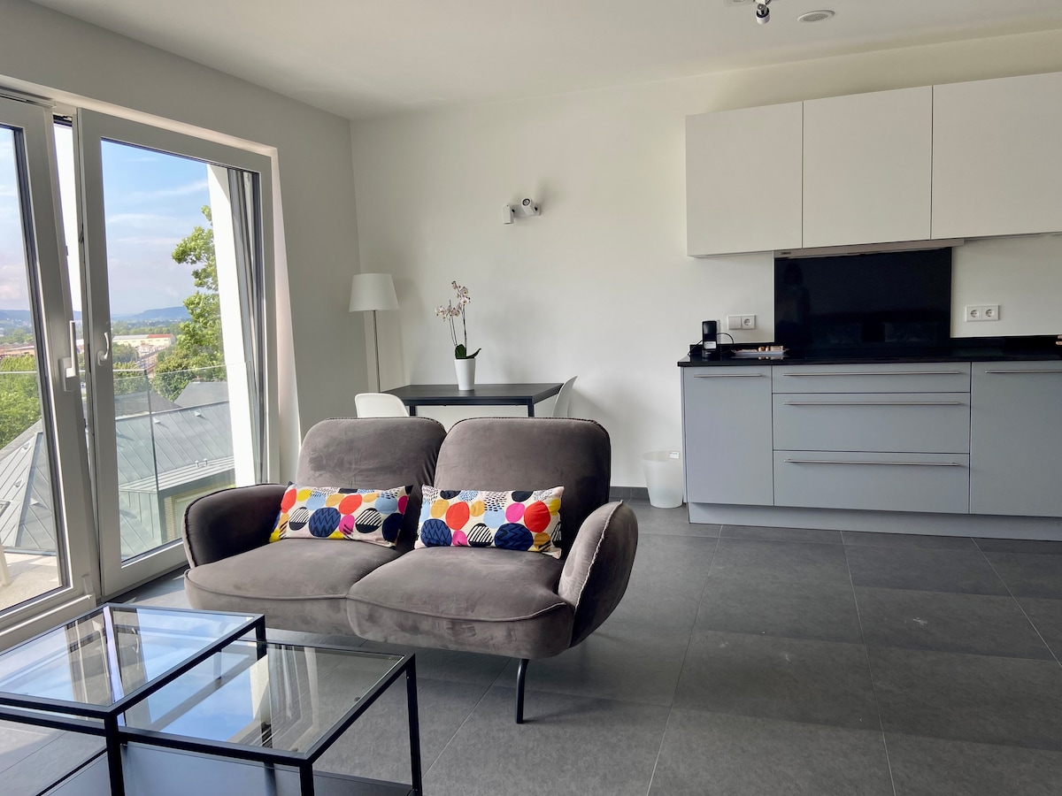 Apartamento tipo estudio en la planta baja, bien situado y recientemente reformado, en la encantadora y tranquila zona de Dommeldange. Hay un aparcamiento gratuito en el sitio, así como una terraza exterior para disfrutar (también para los fumadores). El televisor tiene una cuenta de Netflix para huéspedes y la señal wifi es buena. Hay algunos buenos restaurantes locales y supermercados a poca distancia a pie, sin embargo, hay excelentes conexiones de transporte para llegar a la ciudad, ya que la estación de tren y las paradas de autobús están a 2 minutos.