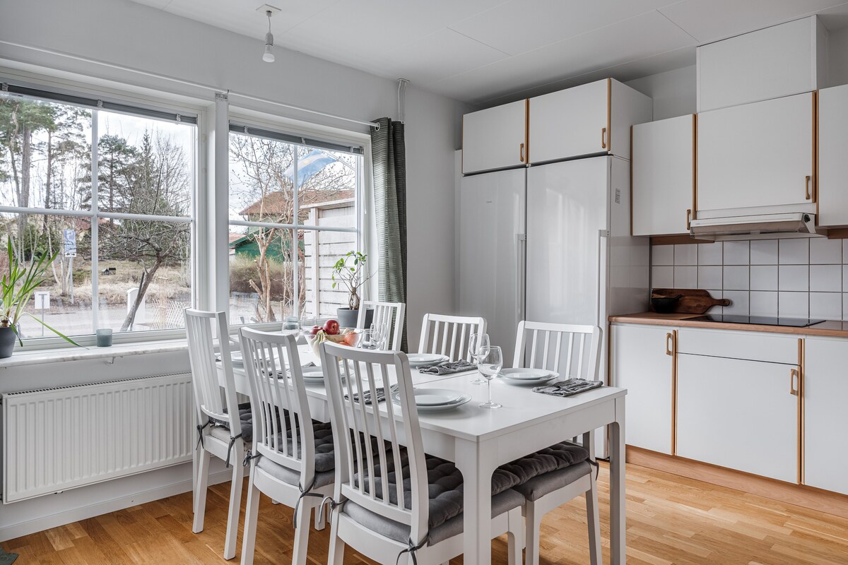 Aquí puedes alojarte en una casa directamente a orillas del mar en el archipiélago de Estocolmo. A solo 30 minutos en coche del centro de Estocolmo. La casa consta de un dormitorio doble con vistas al mar, duerme con la ventana abierta y escucha las olas. Sala social con cocina totalmente equipada, sofá y sillones. Patio en dos direcciones con sol tanto por la mañana como por la noche. Hay una pequeña playa de guijarros justo al lado de la casa, a 20 metros de la casa también hay una sauna de leña que se puede pedir prestada. Muelle de natación disponible a 100 metros de la casa.
