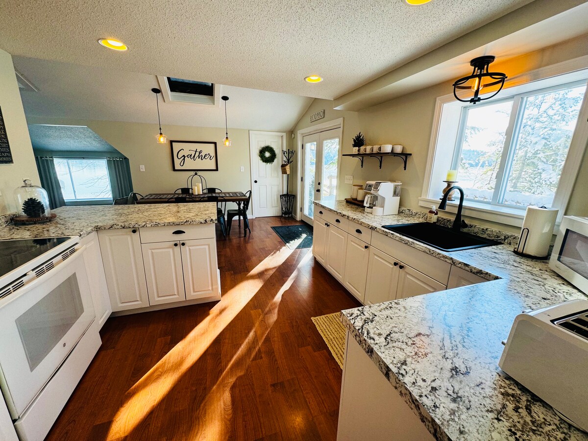 A solo 25 minutos de las instalaciones médicas de Bangor. Hemos añadido una acogedora ampliación a nuestro garaje para que los huéspedes compartan nuestra propiedad frente al mar. Tu propio muelle privado y pequeña zona de playa. Mucho aparcamiento para tu UTV o motos de nieve. El sendero ferroviario está al final de nuestra entrada. Wifi Barbacoa Lavadora y secadora Nevera de tamaño completo con congelador Mesa de pícnic Kayaks No hay fogones para cocinar en el interior, estoy tratando de evitar los olores de comida en el interior. Hay una nueva parrilla de gas con quemador lateral para cocinar al aire libre.