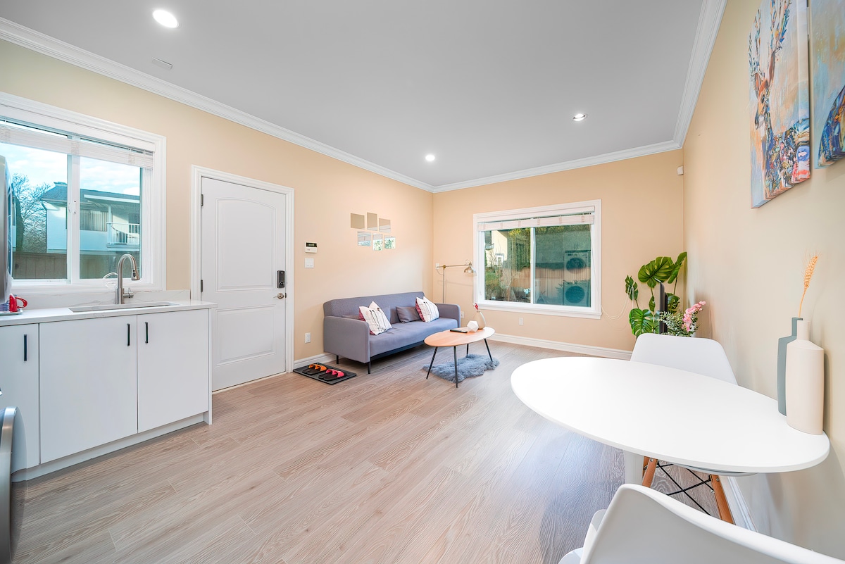 Welcome to our cozy private suite located in a quiet residential neighborhood of Richmond! This bright and comfortable one-bedroom, one-bathroom unit features a private entrance, offering guests full privacy and convenience. Enjoy a clean, fully furnished space ideal for short or long stays, complete with a functional kitchenette, Wi-Fi, and free street parking. Our location is very convenient for travelers — just a short drive to Vancouver International Airport (YVR), and close to shopping ce