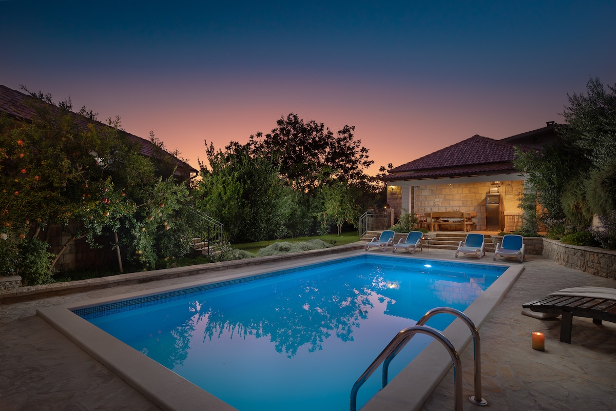 Nuestra propiedad está situada en un barrio tranquilo de Žrnovnica, un suburbio tranquilo a 9 km del bullicio del casco antiguo de Split. Con una piscina de 8 metros de largo y 4 de ancho y una Playstation 4 en una pantalla LCD de 55 pulgadas, seguramente no tendrás un momento aburrido. Para todas las demás experiencias inolvidables, estamos a tu disposición. ¡Hasta pronto! Ante