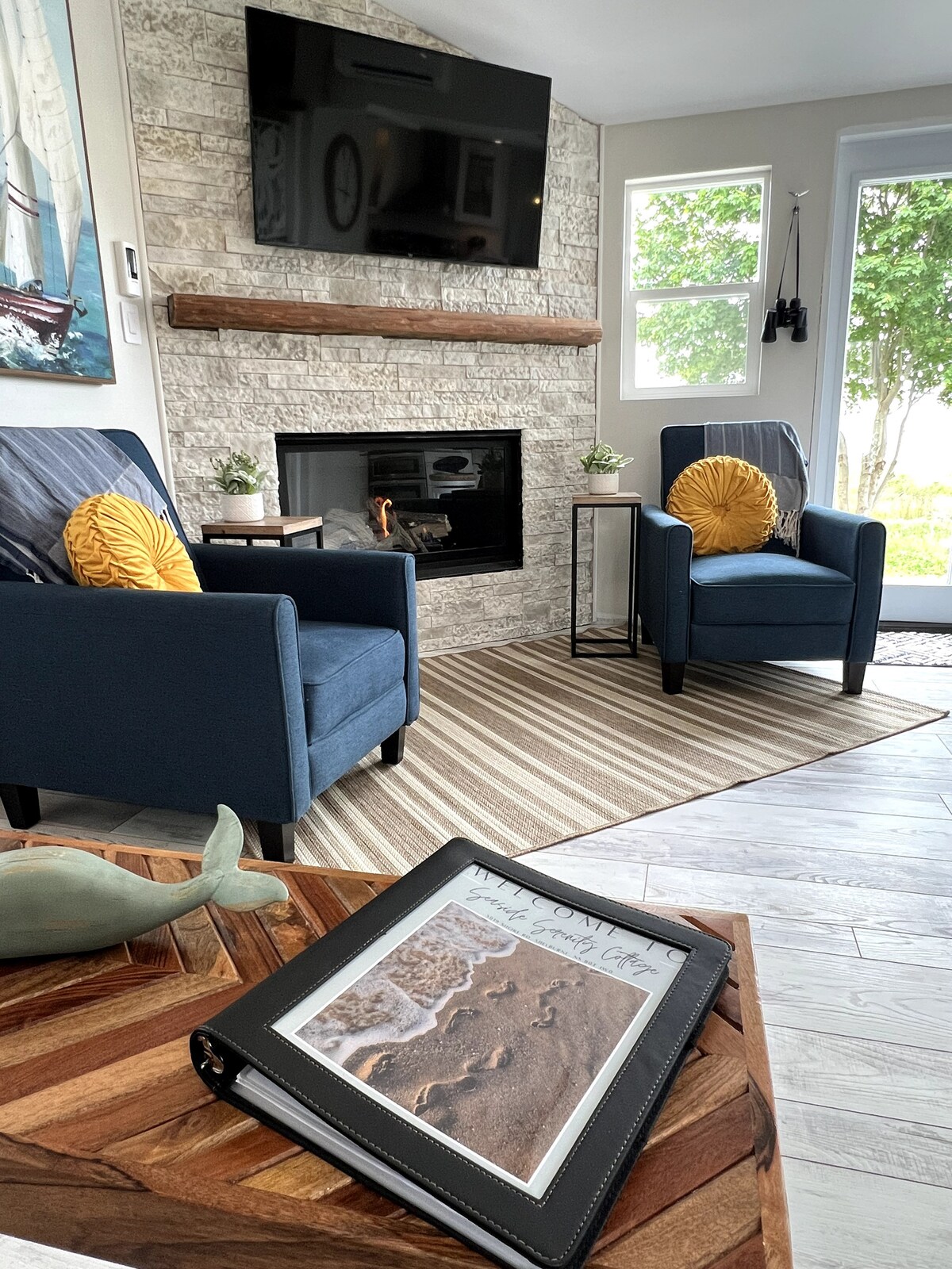 Escape to Seaside Serenity Cottage, a luxurious oceanfront getaway in Shelburne. Just 2.5 hours from Halifax. Enjoy our fully renovated 2BR cottage with high-end finishes and breathtaking ocean views. Ideal for relaxation, the property features a cozy fireplace, smart TVs, and a soaker tub with scenic views. Explore 3 acres of serene waterfront and relax on our deck or venture out with provided kayaks. Perfect for families, couples and remote workers seeking a tranquil retreat.