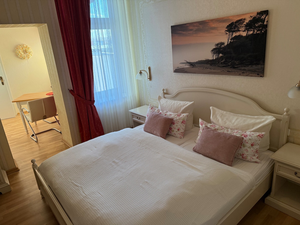 Apartamento pequeño (aprox. 36 m²) en el sótano de una villa de la ciudad con entrada independiente. El conocido Hotel Neptun está a solo 100 metros de distancia. La proximidad a la playa es casi imposible. El acceso es a través de una cerradura electrónica. Sábanas y toallas están amuebladas. El apartamento está equipado con TV por cable, Wi-Fi, FireTV, además de la cocina con Senseo y Sodastream.