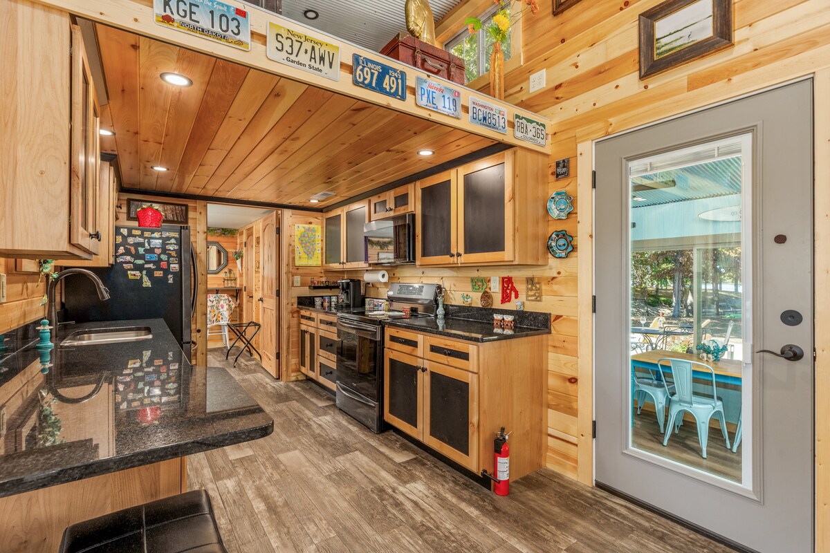 El contenedor en la granja No Bad Days es un contenedor de granos de nueva construcción. ¡Mientras entras en el check-out, la hermosa artesanía en el techo! Hay un loft arriba donde encontrarás una cama tamaño king. También hay una silla extragrande que también se convierte en una cama pequeña. El piso principal tiene un sofá cama para dos personas. Hay una cocina y un baño completo. Sabemos que disfrutarás del aspecto rústico de esta propiedad única. ¡Estamos a 5 minutos del puerto deportivo de Lithia Springs y tenemos espacio para estacionar un barco!